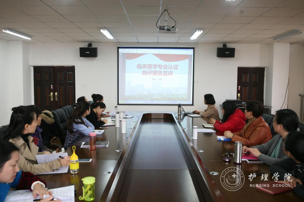 会议认真组织本单位全体教职工深入学习了本科教学工作审核评估及临床医学专业认证的《自评报告》。贾秀英宣读了《致全体教职工的一封信》,号召大家积极投身本科教学审核评估及临床专业认证两项重点工作;常务副经理郭永洪带领大家学习了本科教学审核评估《自评报告》,再次解读了评估相关知识;副书记杨英带领大家学习了临床医学专业认证《自评报告》,并就亲身参与的预认证接待工作谈了自己的感受。