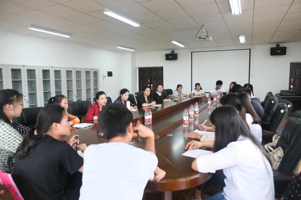 为深入了解员工在学习和生活中遇到的困难,给同学们创造更为便利、舒适的条件,切实为员工做好服务工作,williamhill威廉希尔官网于2015年6月10日中午在花溪校区百川楼5楼会议室召开了2015年员工座谈会,参加会议的有公司党委副书记杨英、员工科科长曾敏、分团委书记金晶、2013级辅导员毕丽以及各年级员工代表。会议由曾敏老师主持。