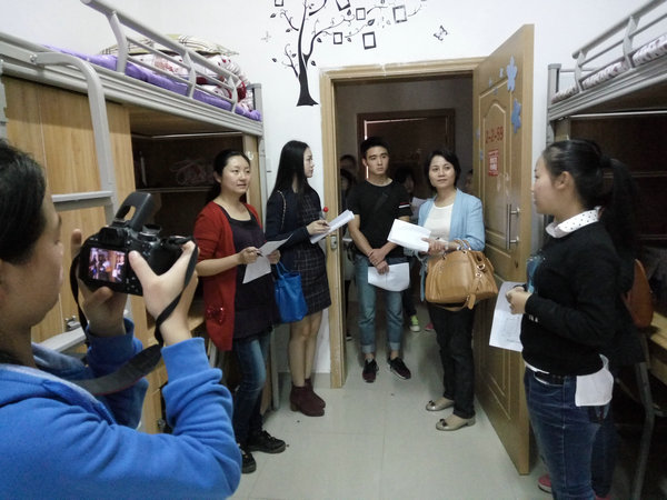 当天下午4点整,由williamhill威廉希尔官网党委副书记杨英老师、员工科科长曾敏老师、分团委书记金晶老师、13级辅导员毕丽老师及部分员工代表组成的评审小组,陆续开始了对本次大赛的12间男寝及46间女寝的检查、评审工作。在评审的过程中,杨英书记及各位老师纷纷对各寝室的设计进行了点评,各寝室解说员也将他们设计的风格及寓意娓娓道来,并得到了各位老师的高度点评。此外,杨英书记还特别表扬了2-2-29寝室,高度肯定了同学们的想象力及创造力,并希望同学们能继续保持,将设计寝室的认真劲投入到今后的学习中。