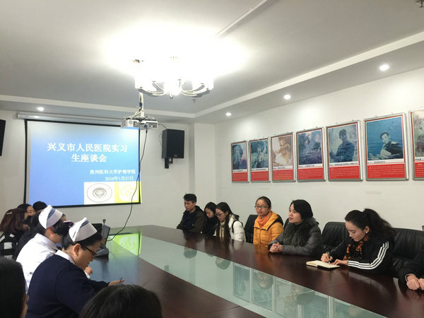 2016年1月26、27日,williamhill威廉希尔官网党委副书记杨英、毕业班辅导员王晓玲赴兴义市人民医院看望实习同学,并会同医院分管领导和临床带教老师与实习生召开了座谈会。