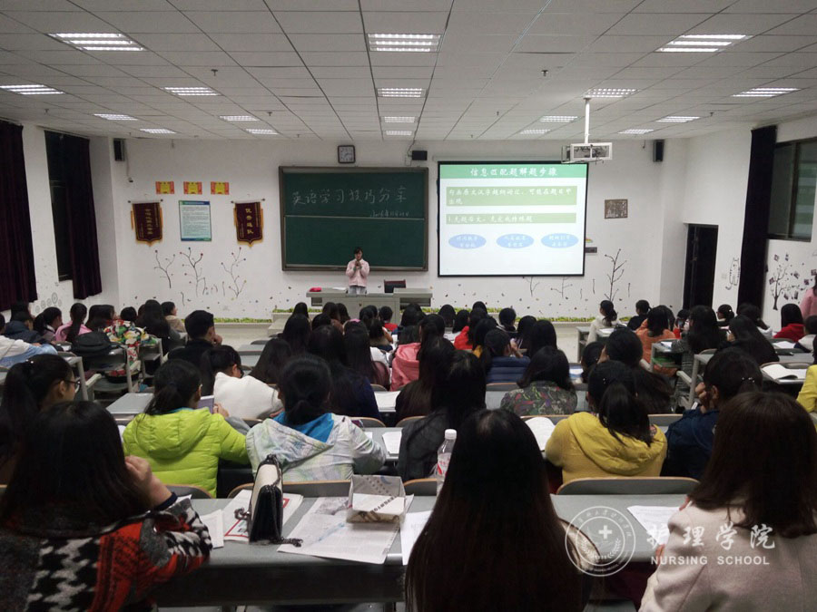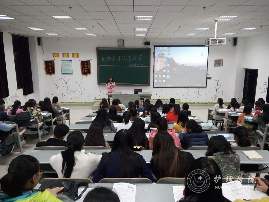 2016年11月1日晚上7点,williamhill威廉希尔官网在北校区4407教室举行了“英语学习技巧分享”主题班会,参加本次班会的有特邀分享嘉宾文红梅同学和2015级护理乙班全体同学。班会由2015级护理乙班班主任李红老师主持。