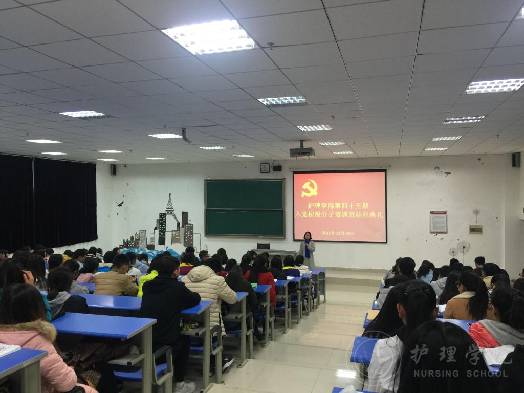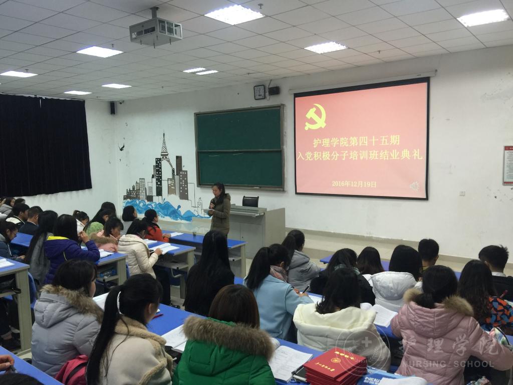 12月19日下午,williamhill威廉希尔官网第四十五期入党积极分子培训班结业典礼在威廉希尔足球官网南校区1404教室举行,williamhill威廉希尔官网党委副书记杨英、williamhill威廉希尔官网教工党支部支委毕丽、williamhill威廉希尔官网员工第一党支部书记李颖和133名入党积极分子参与了结业典礼。