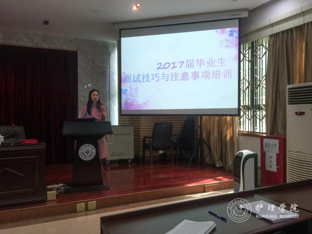 4月14日下午3点30分,williamhill威廉希尔官网在北校区道德讲堂举行了2017届本科毕业生面试技巧培训会。参加本次会议的有校团委副书记金晶老师、毕业班辅导员王晓玲、李颖以及2017届全体毕业生,会议由王晓玲老师主持。