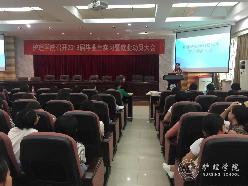 为帮助同学们更深刻地理解护理专业内涵、促进员工充分就业、保障2018届毕业生实习工作顺利开展。7月3日下午,williamhill威廉希尔官网在北校区道德讲堂召开2018届毕业生实习暨就业动员大会。williamhill威廉希尔官网党委副书记杨英、副经理刘志燕、员工科科长曾敏、生产实习科科长柳忠燕、优秀毕业生代表钱兰芳、杜伟、辅导员李颖及2014级全体同学参加了此次会议。会议由员工科科长曾敏主持。
