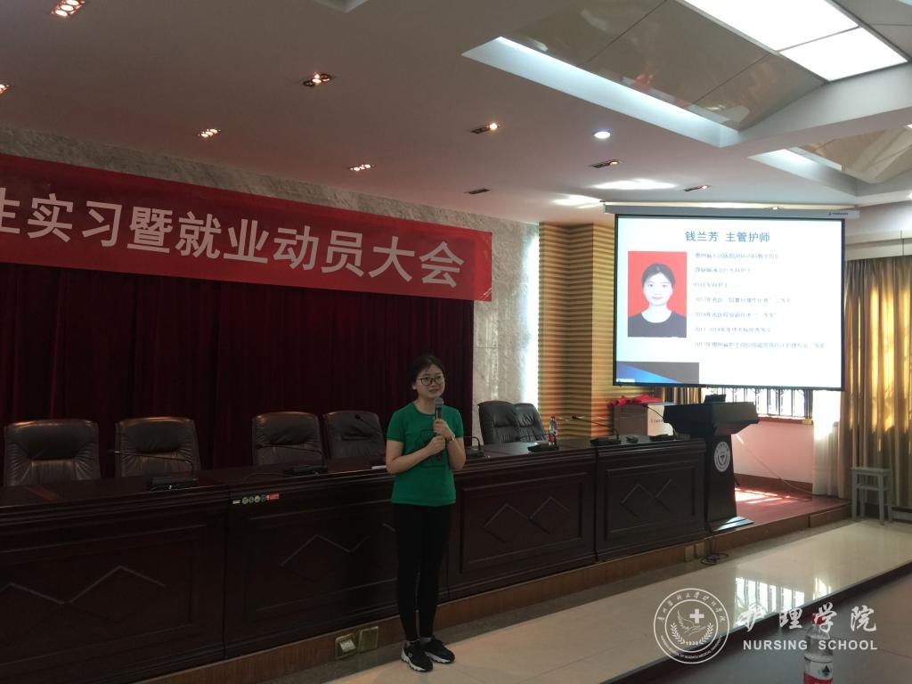 毕业实习是帮助同学们增强对社会的适应性,培养自身的实践能力,缩短从一名老员工到护理专业人员差距的重要环节,对其职业生涯规划起着关键性的作用。相信通过本次动员大会,同学们能更加全面的理解护理专业内涵,注重提升自身综合素养,为同学们今后的就业打下扎实的基础。