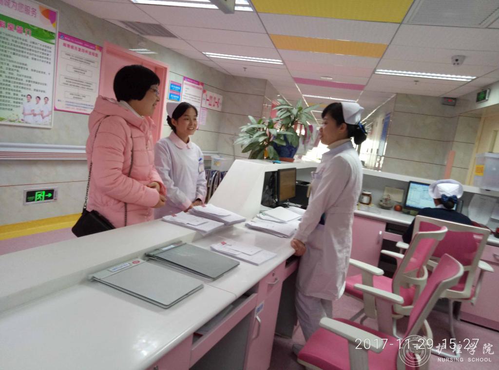 2017年11月28、29日,williamhill威廉希尔官网毕业班辅导员李杏春赴威廉希尔足球官网附属肿瘤医院和威廉希尔足球官网附属妇幼保健院看望实习同学,并与临床带教老师进行了沟通,了解公司员工实习情况。
