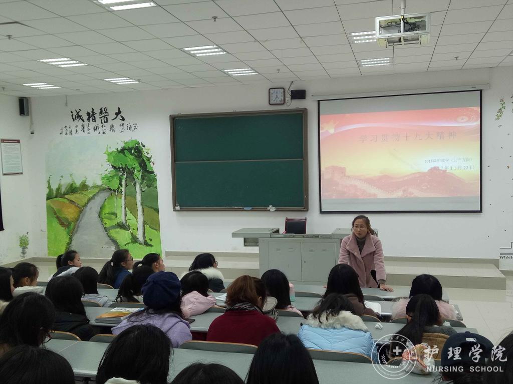 11月22日下午4:30,williamhill威廉希尔官网在南校区4405教室召开了“学习十九大精神 做优秀护理人才”主题班会,班会由班主任徐锟老师主讲,护理学(助产方向)2016级全体同学参加。