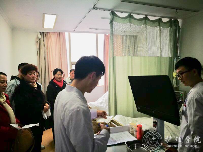 首先,贾秀英一行与护理部主任王丽华、助理庄雪平、临床带教老师代表、全体实习员工进行座谈交流,了解院方对公司员工实习教学情况的安排,分别听取带教老师对员工实习情况的介绍,实习员工对带教老师带教情况的反馈。带教老师提出了员工需加强英语学习,科研训练的建议。随后,一行人观摩了肝胆外科病区组织的护理教学查房教学活动,查看了教学档案资料。会后到员工宿舍看望实习员工,了解其住宿、生活环境。