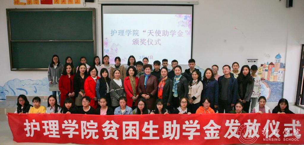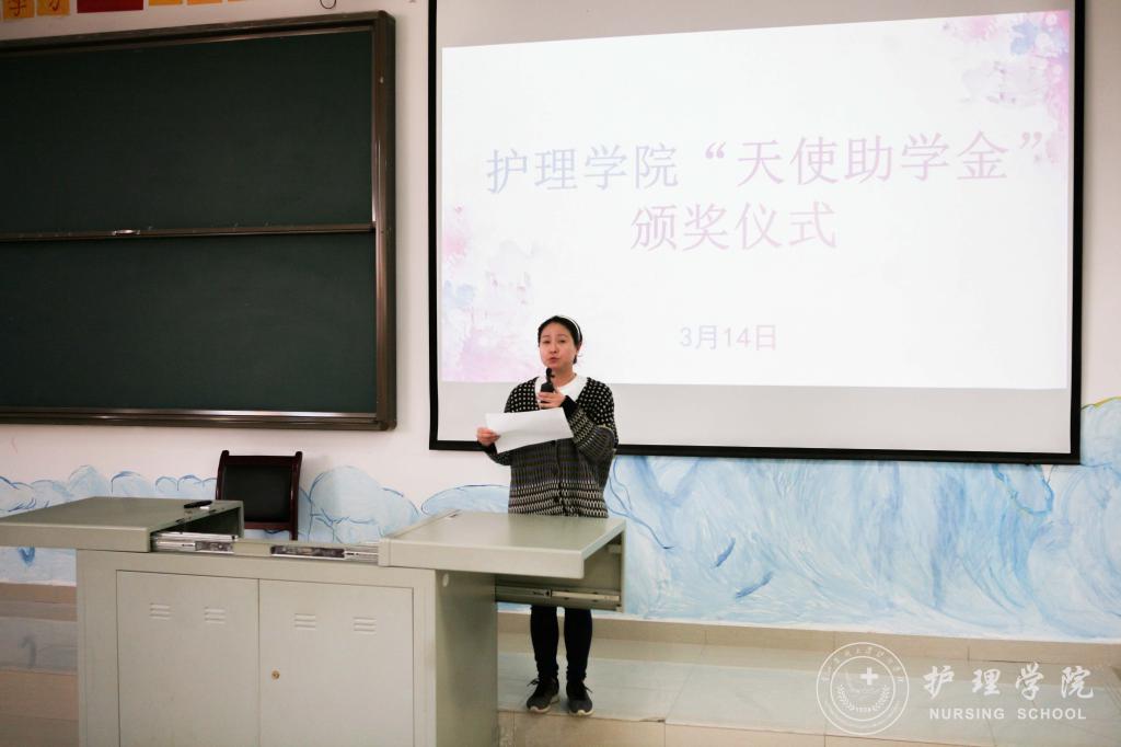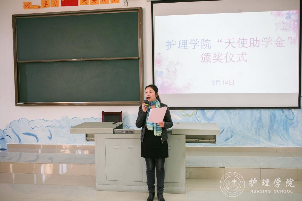 首先,员工科科长曾敏介绍了“天使助学金”的由来,并转达了“天使助学金”主要资助人浙江大学附属邵逸夫医院,从事护理工作25年的秦建芬老师对同学们的期望:“护理工作是助人的工作,一位好的护士,对患者而言,就是好的药物,所以尽自己的这一点绵薄之力,能够对同行的兄弟姐妹们的学业生活有所帮助,希望同学们能够更好地为患者提供照护。”接着,williamhill威廉希尔官网综合办主任张黎宣读了williamhill威廉希尔官网“天使助学金”的受助名单。张黎鼓励同学们要心怀感恩、努力学习、乐观生活,以优异的成绩来回报师长和秦女士的关心与帮助。最后,2017级护理学乙班同学黄虹久代表受助同学发言,向关心和帮助困难同学的秦女士和领导、老师表示崇高的敬意和衷心的感谢。她代表受助同学承诺:要牢记校训、院训,学好专业知识,增强实践能力,提高道德修养,为成为一名优秀的白衣天使打下坚实基础,争取在以后的工作中更好地服务人民、回报社会。