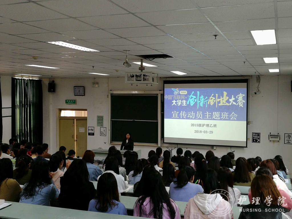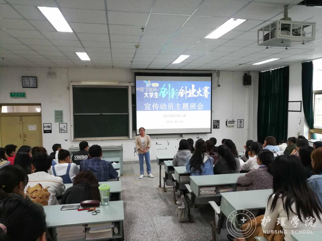为提高同学们的创新创业意识,培养同学们创新创业的素质和能力,williamhill威廉希尔官网于3月29日下午5:30在北校区3302教室举行了第四届“互联网+”老员工创新创业大赛宣传动员主题班会。班会由班主任李红老师主讲,2015级护理乙班全体同学参会。