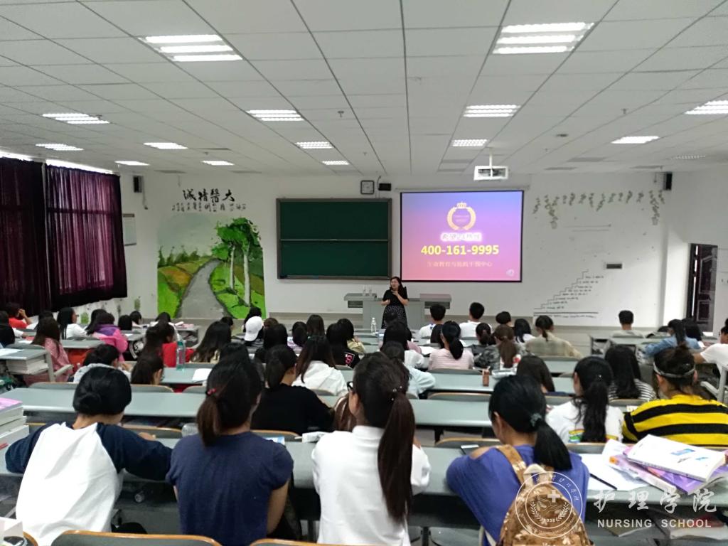 首先,李雪萍向大家介绍“希望24热线”,希望同学们可以找到一个倾述的平台。席间,李雪萍用幽默风趣介绍了生命干预危机的“九大征兆”,绘声绘色为同学们介绍了“三规六禁”、“五法宝”等相关知识,师生积极互动,掌声不断。