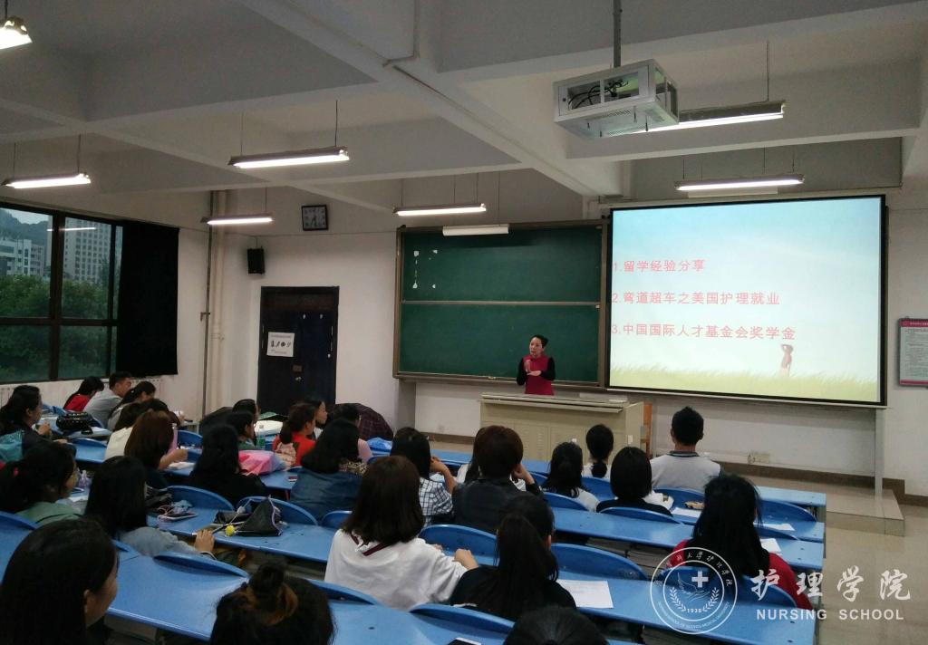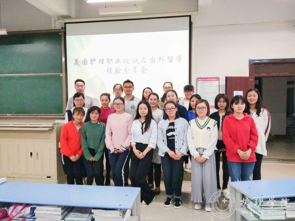 2018年5月31日下午7:00,williamhill威廉希尔官网于北校区2401教室召开了“美国护理职业现状及国外留学经验分享会”,分享会邀请到美国海格斯大学出国留学区域负责人彭冰老师为公司员工进行了交流指导,williamhill威廉希尔官网党委副书记杨英、护理技能实验室主任周谊霞、员工科科长曾敏、辅导员李杏春和2014、2015级部分同学参加了此次交流会。会议由周谊霞老师主持。