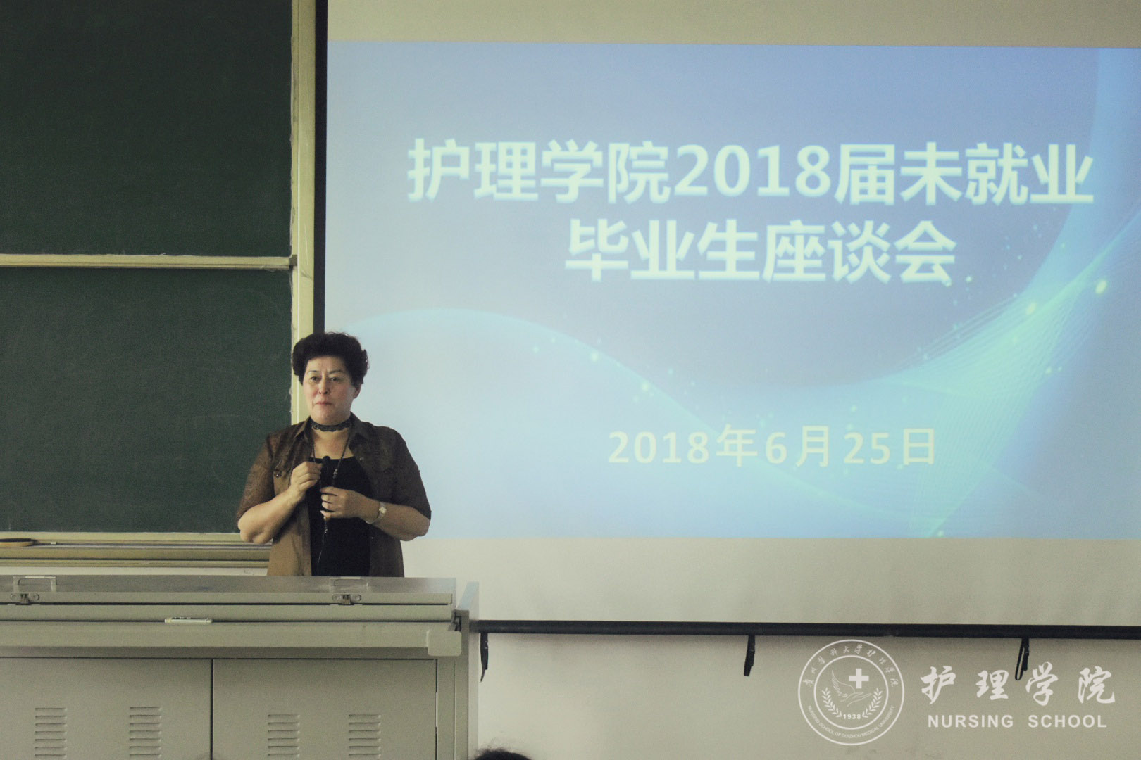 会上,贾秀英首先表示了对未就业同学亲切的关心,了解同学们就业困难的各种因素。贾秀英指出同学们要重视面试礼仪、语言表达能力的培训,加强笔试操作的学习,希望同学们降低期望值,全面认识自我,提升自我,抓住机遇,不再观望,先就业再创业再择业,最后贾秀英给予同学们美好的祝愿。