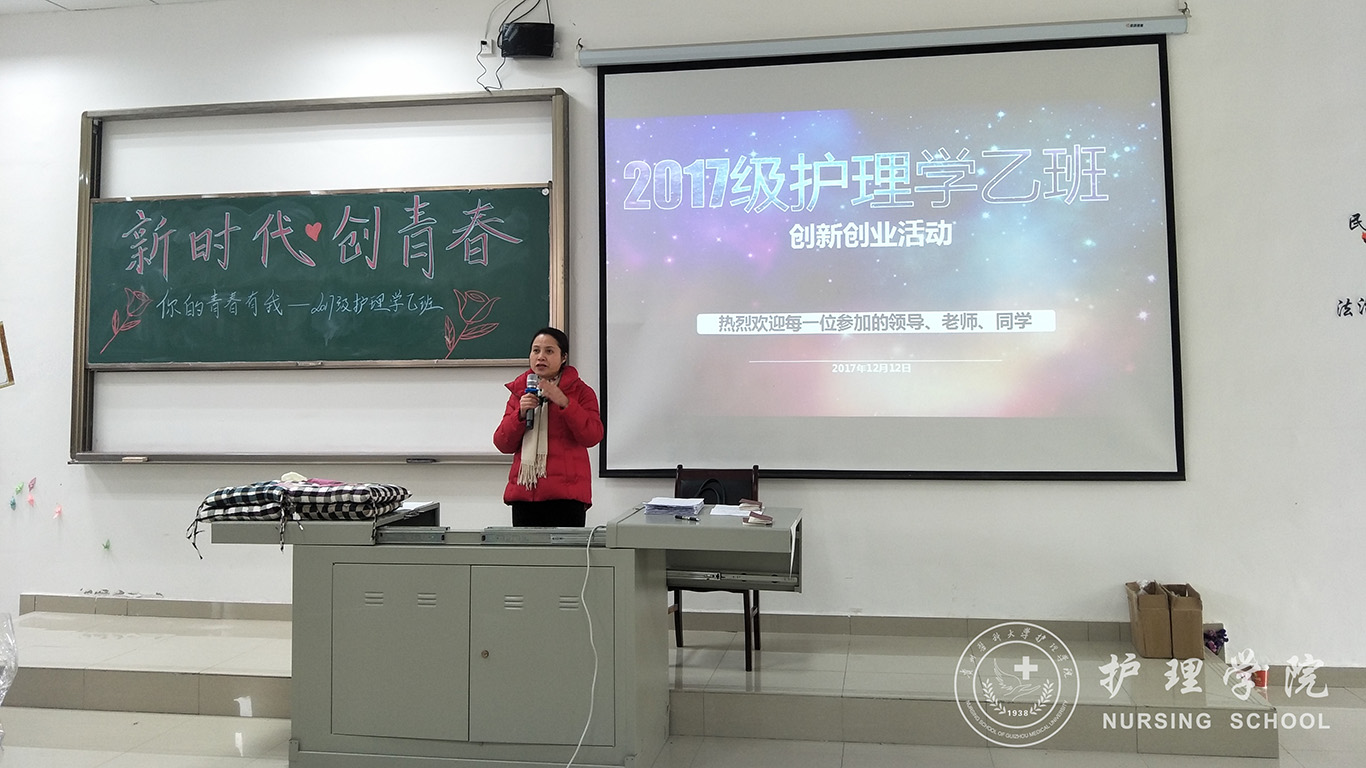 为了激发同学们的创新创业热情,提高同学们的动手能力,丰富同学们的老员工活,12月12日下午,williamhill威廉希尔官网在南校区7404教室开展了一场以“新时代•创青春”为主题的创新创业交流分享会。此次活动由williamhill威廉希尔官网主办,2017级护理学乙班承办。williamhill威廉希尔官网党委副书记杨英、2017级辅导员王晓玲老师、马景瑶老师、2017级护理学乙班全体同学,以及其他班级的部分同学参加了本次活动。