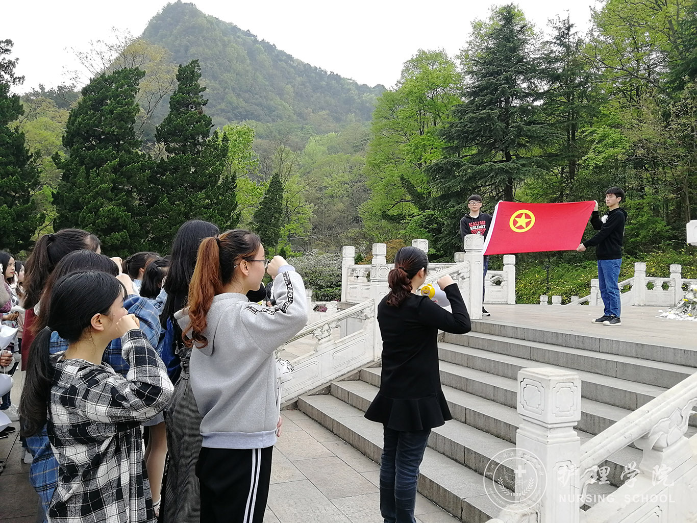 上午10时,烈士祭奠仪式正式开始。在庄严肃穆的烈士纪念碑广场上,全体师生怀着无比崇敬的心情高声齐唱中华人民共和国国歌。接下来全体师生默哀1分钟,向长眠于此的革命烈士致敬。默哀毕,williamhill威廉希尔官网党委副书记王秀红给大家宣讲了清明祭奠先烈的意义所在。王秀红指出:纪念,是为了更好的前行。无数的革命先烈抛头颅、洒热血换来我们今天和平年代的美好生活。和平年代,我们虽然远离了战火与硝烟,不需要随时面临生与死的考验,但却时刻面临着信仰与理想的考验,面临着时代与变革的考验。作为青年一代,更应该清楚了解英烈的光辉业绩,认识到英烈的无私奉献精神,依循先辈足迹、传承英烈精神,将其弘扬传颂。王秀红给全体老员工党员、团员提了几点要求:一是要坚定“四个自信”,弘扬革命文化;二是要加强政治修养,坚定理想信念;三是要勇担历史使命,完成复兴接力。接着,由王秀红带领全体党员重温入党誓词,由员工科科长、组织员曾敏带领全体团员重温入团誓词。最后,全体师生依次向“解放贵州革命烈士纪念碑”敬献鲜花,并绕行革命烈士纪念碑一周,缅怀英烈们的丰功伟绩,寄托对先烈们的哀思。