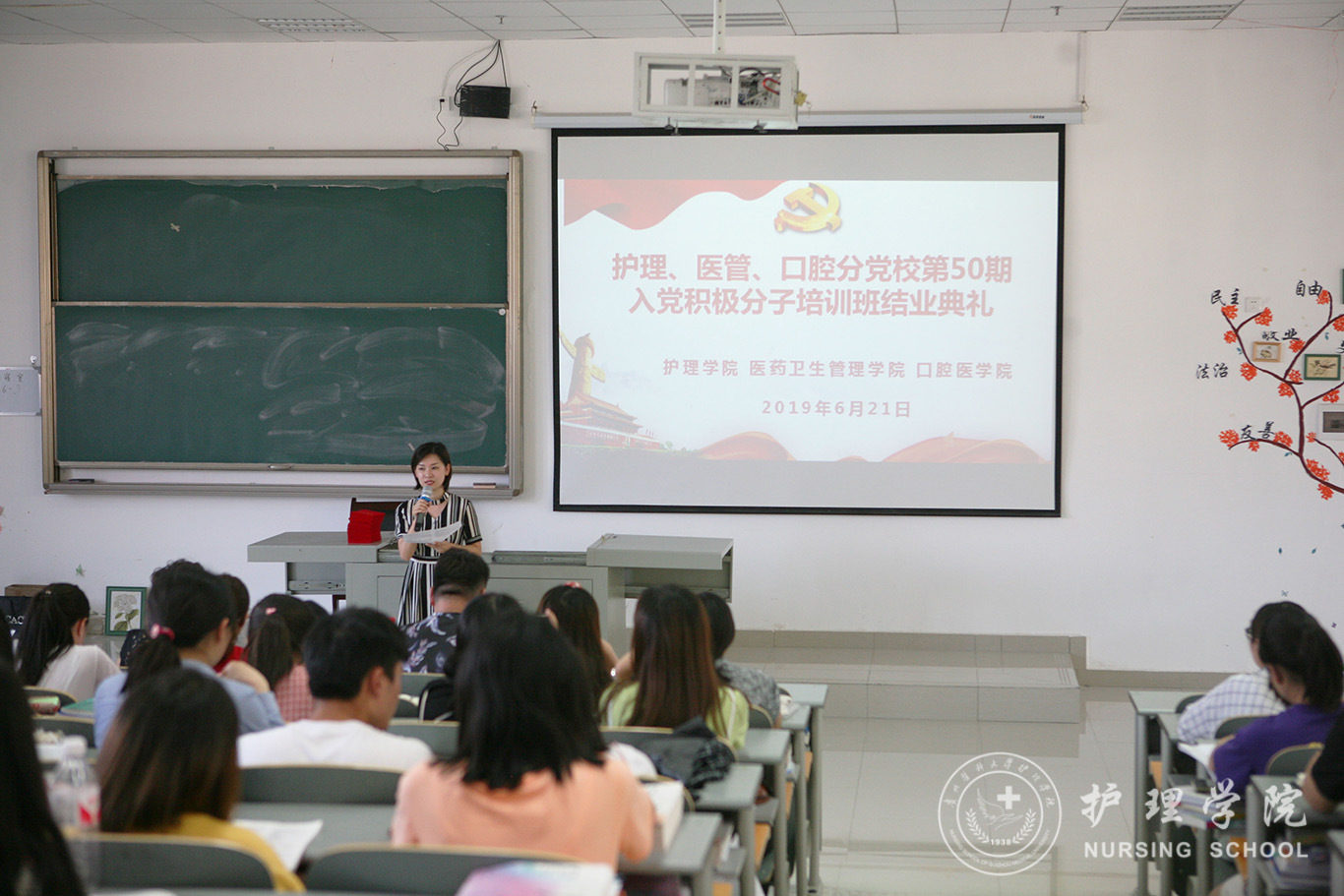 6月21日,护理、医管、口腔分党校第50期入党积极分子培训班结业典礼在南校区7404教室举行。口腔医公司党委副书记钱禾、williamhill威廉希尔官网党委副书记王秀红、医药卫生管理公司分团委书记刘安跃及培训班全体学员参加了结业典礼。典礼由本期培训班班主任、williamhill威廉希尔官网员工第二党支部书记马景瑶主持。
