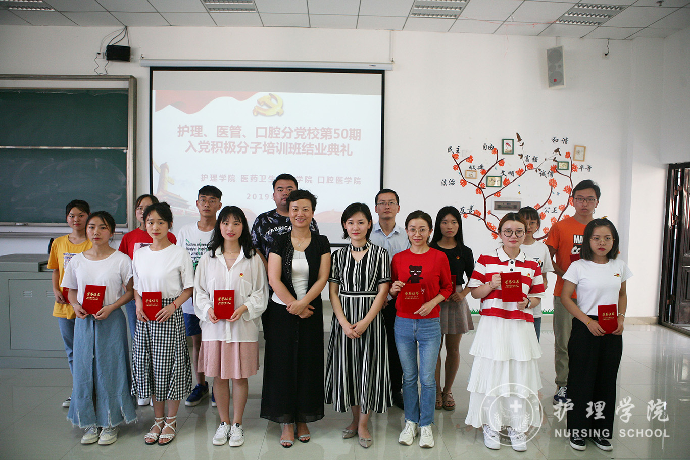 典礼开始,全体起立,奏《国际歌》。接着,优秀学员代表张婷、李庆美代表本期入党积极分子培训班学员进行交流发言,分享了自己的学习收获,对自己的思想、学习等方面提出了新的目标和更高的要求。钱禾代表williamhill威廉希尔官网党委、口腔医公司党委、医药卫生管理公司党委向全体顺利结业的学员表示热烈祝贺,向为本期培训班辛勤付出的老师们表示衷心的感谢!钱禾指出,护理、医管、口腔分党校高度重视本期培训班的各项工作,经过老师和同学们的共同努力,圆满地完成了预定的培训任务。同时,钱禾就学员们如何在实践中巩固和扩大培训成果,不断成长进步,提了三点希望:一是希望学员们在学习中提高站位。二是希望学员们在奋斗中担当使命。三是希望学员们在实践中争做先锋。最后,马景瑶宣读了分党校对蓝阔耀、陈艳等12名优秀学员的表彰决定;出席结业典礼的领导、老师为优秀学员颁发了荣誉证书,并合影留念。