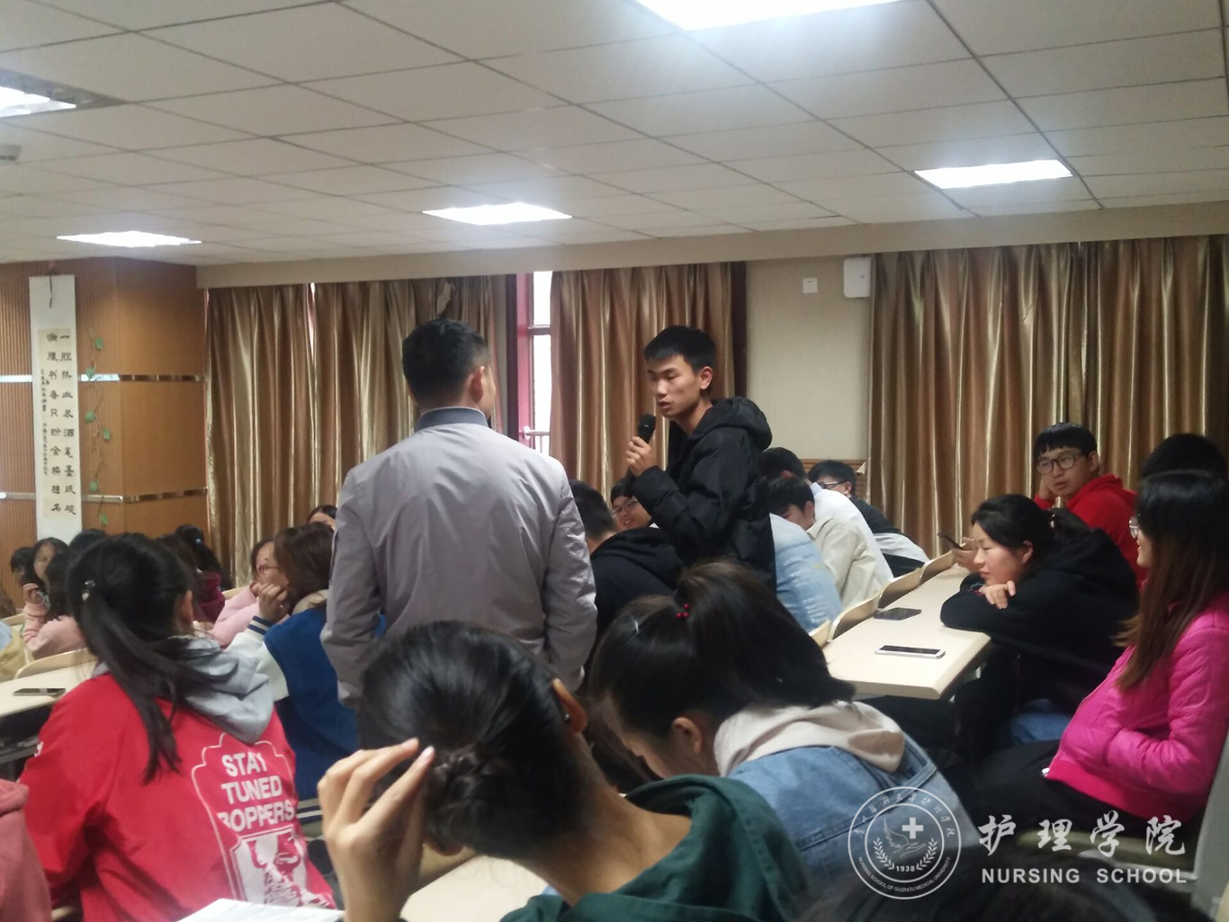 最后,同学们就考研、执业资格考试、恋爱、兼职、实习等问题踊跃发言,柳忠燕逐一、耐心的予以解答,并激励同学们更加努力地做好自己,争取成为在校老师同学喜欢,在医院令病人放心的优秀一员!