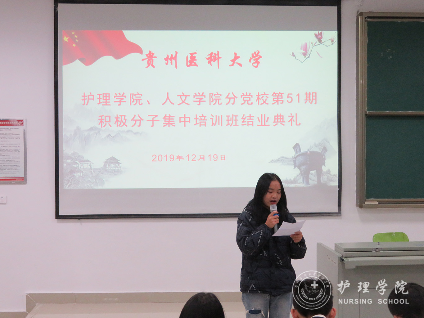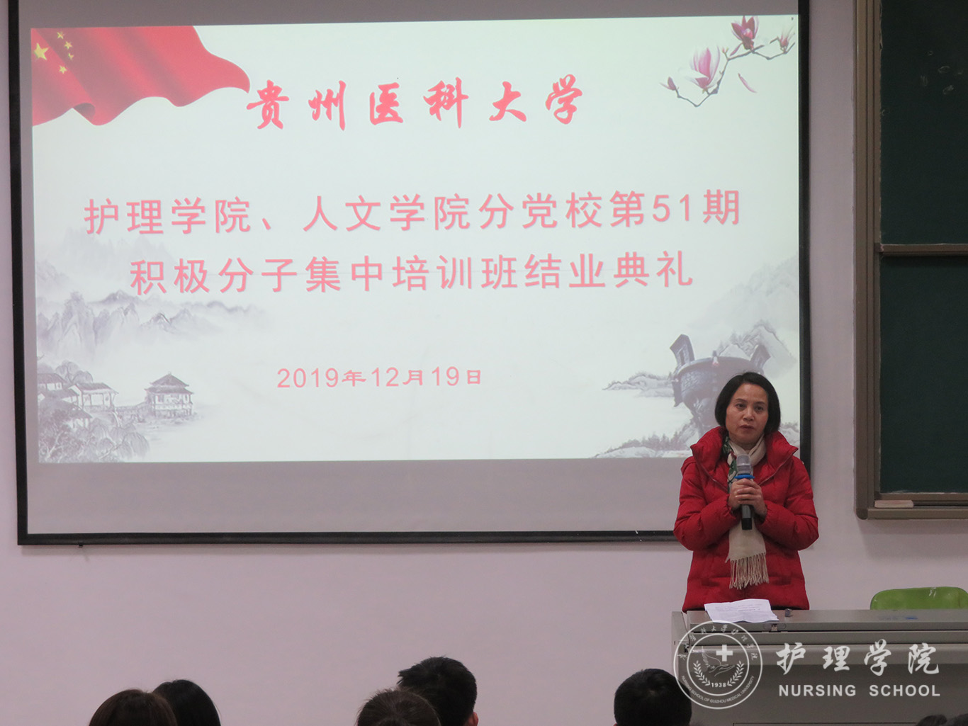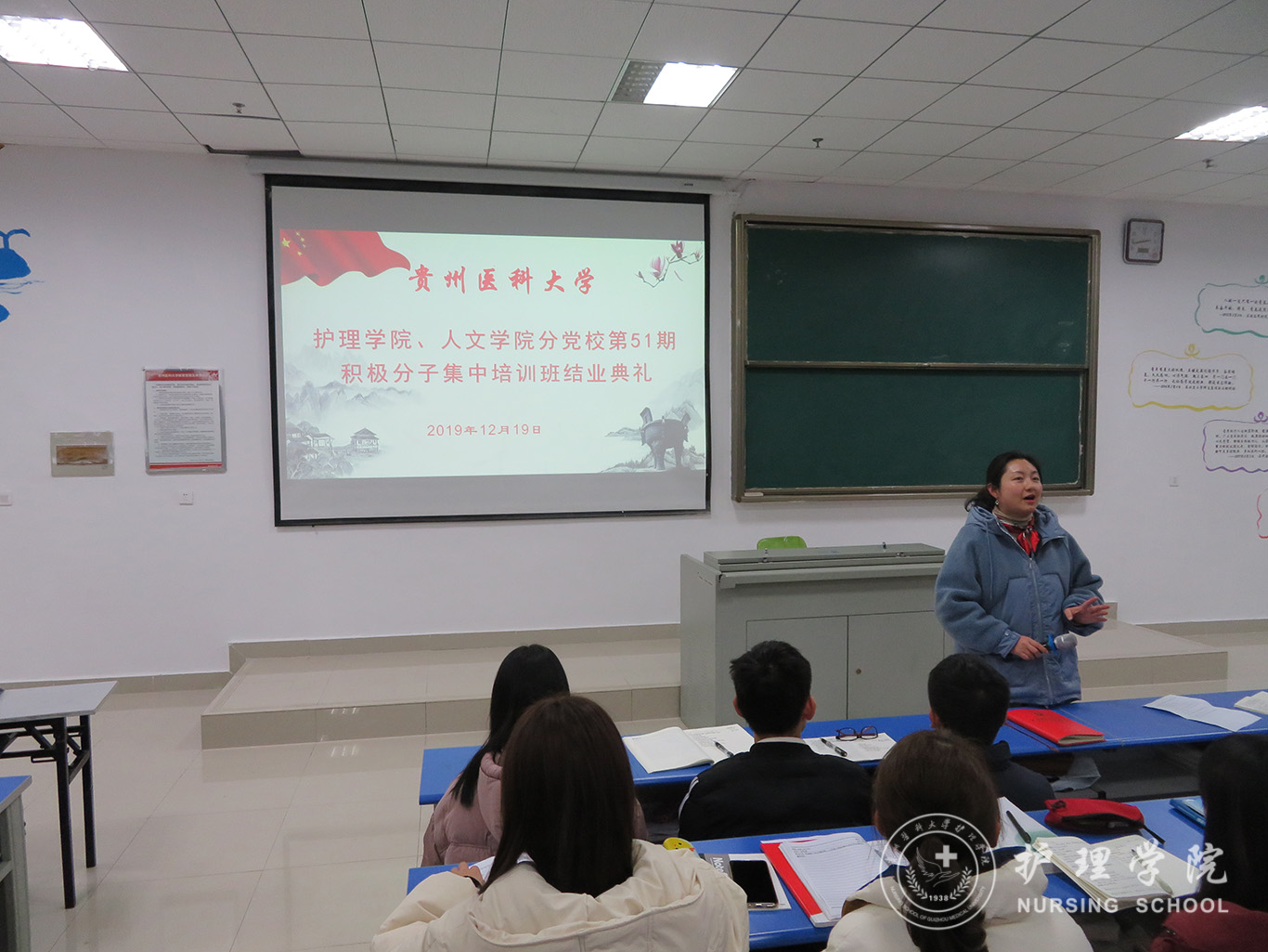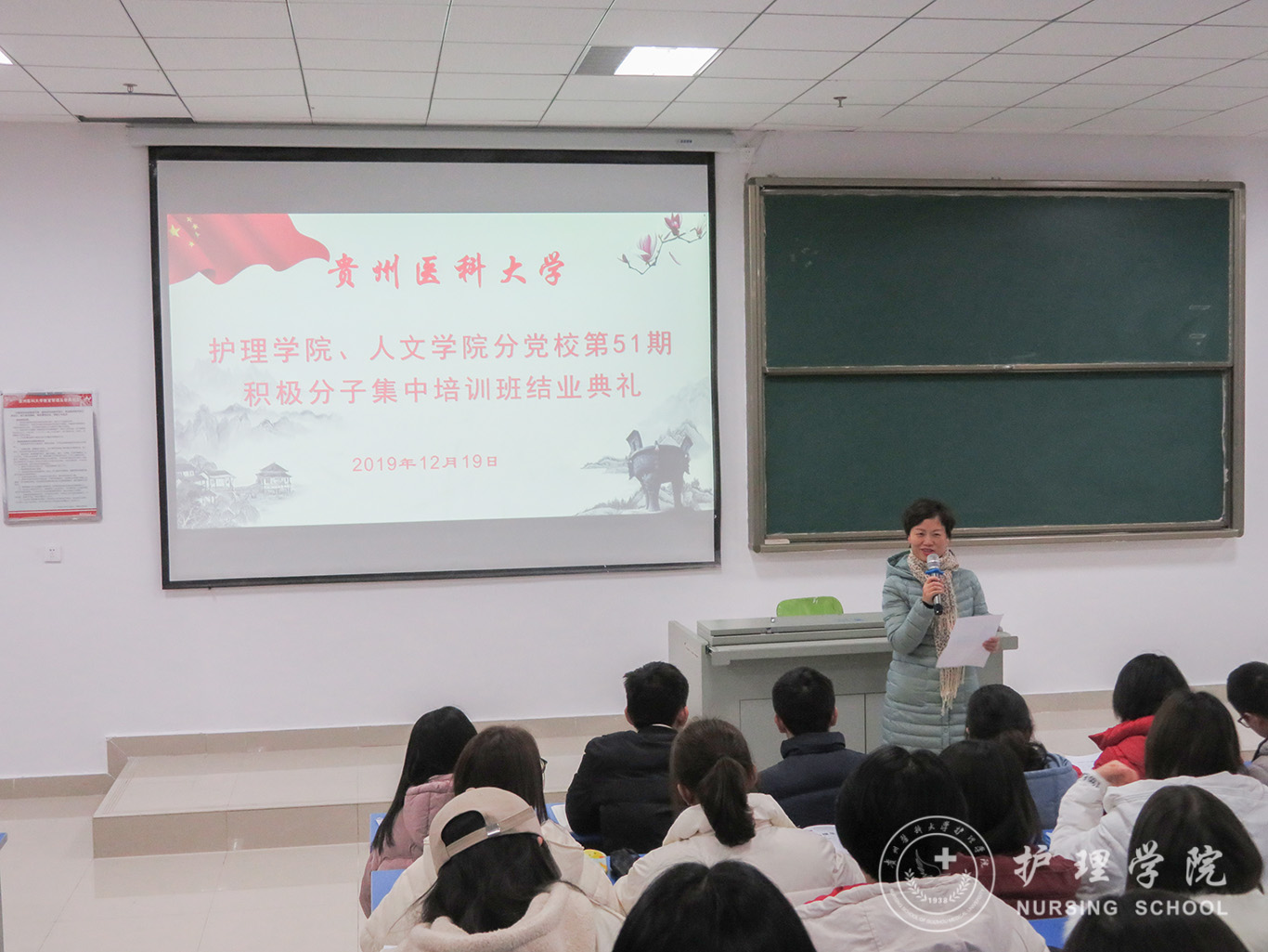 12月19日,williamhill威廉希尔官网、医学人文公司分党校第51期入党积极分子集中培训班结业典礼在南校区广德楼1301教室举行。williamhill威廉希尔官网党委书记杨英、副书记王秀红、本期培训班班主任曾敏及全体学员参加了典礼,典礼由王秀红主持。