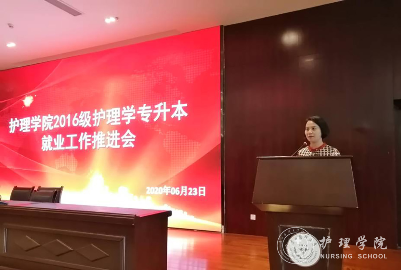 会上,张红霞向全体成员传达了公司关于2020年毕业生就业工作的政策和措施,并结合上午刚刚进行的谌贻琴省长来校做形势政策报告对同学们提出的几点希望,深入解读了国家对医疗卫生人才需求政策,要求各位老师和同学认真落实执行。她指出,同学们要学会从用人单位的角度思考问题,精准自我定位,提升求职成功率;同时鼓励同学们积极到基层就业,为保障基层民众健康贡献自己的力量。