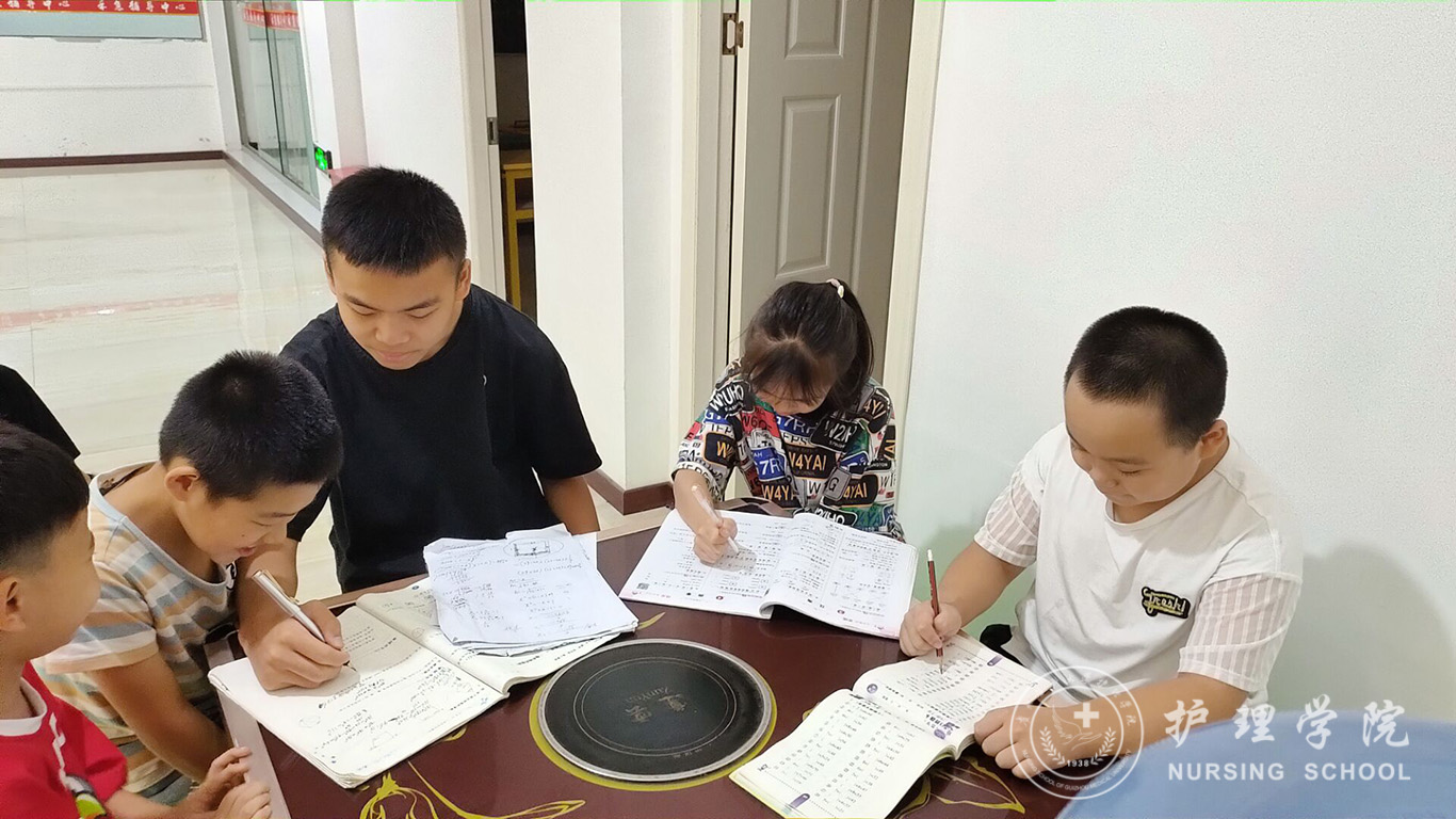 针对低年级的孩子,志愿者们带领他们临摹字帖、背诵诗词;针对高年级的同学,则通过自己的经验传送指导他们加深对公式化知识的掌握理解;志愿者们和蔼可亲,耐心细致的辅导激起了孩子们的学习兴趣,以至于夜幕降临大家都没察觉。活动结束,志愿者们在孩子们依依不舍的告别中返程。