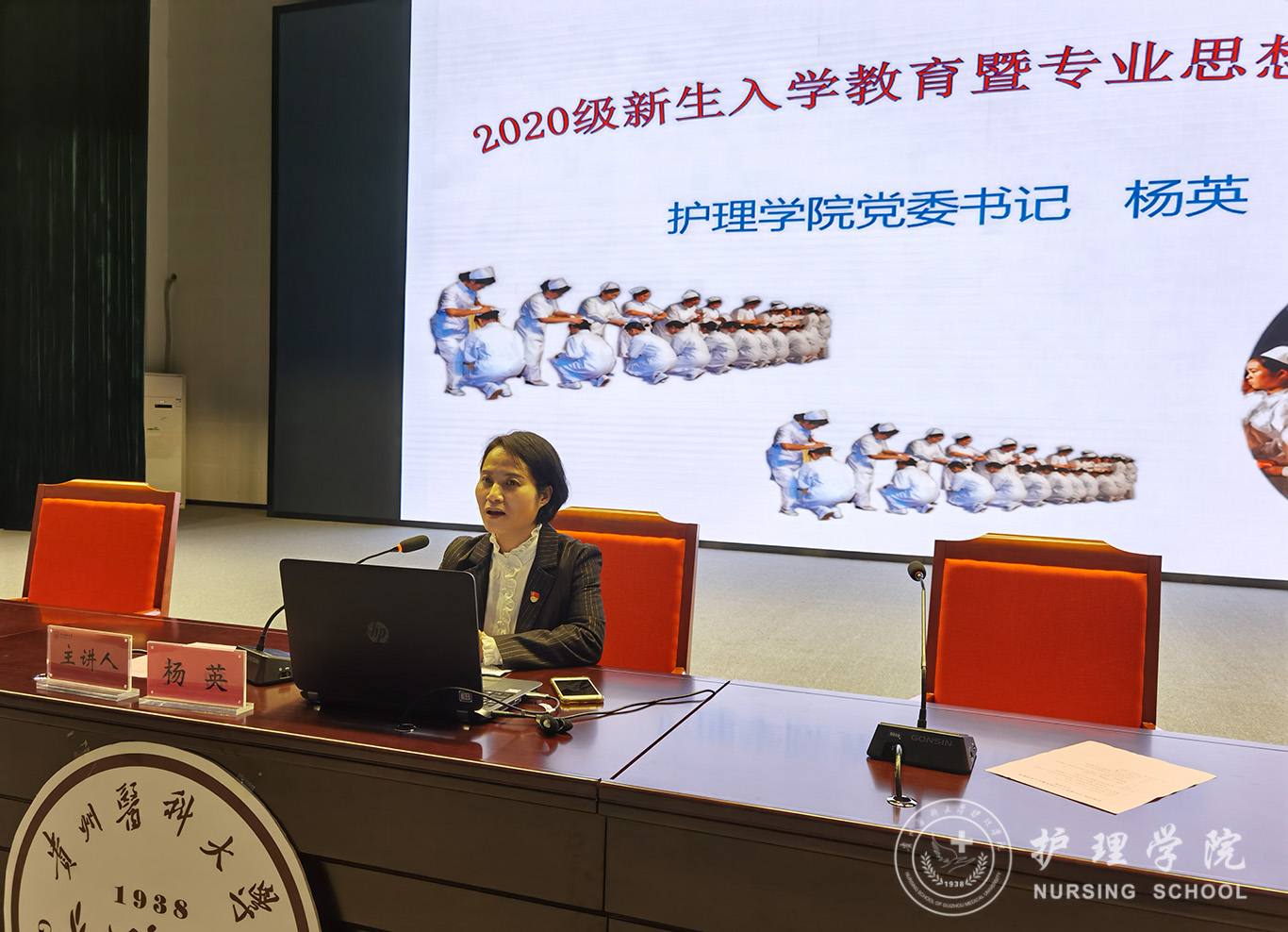 随后,williamhill威廉希尔官网党委书记杨英以“你们了解护理学专业吗?”为切入点,围绕护理学的历史、护理学前辈南丁格尔生平介绍及历届南丁格尔奖章获得者的励志故事,从护理的定义、医生与护士的区别、护士职业规划等方面,引导新生正视护理行业并做好职业生涯规划。她深情叮嘱全体新生并提出四点希望:一要尽快树立人生的远大理想与大学的奋斗目标,早日成为新时代祖国卫生健康事业的优秀接班人;二要养成良好习惯,尽快适应老员工活;三要多读书、多锻炼身体;四要珍惜大学时光,充实老员工活。