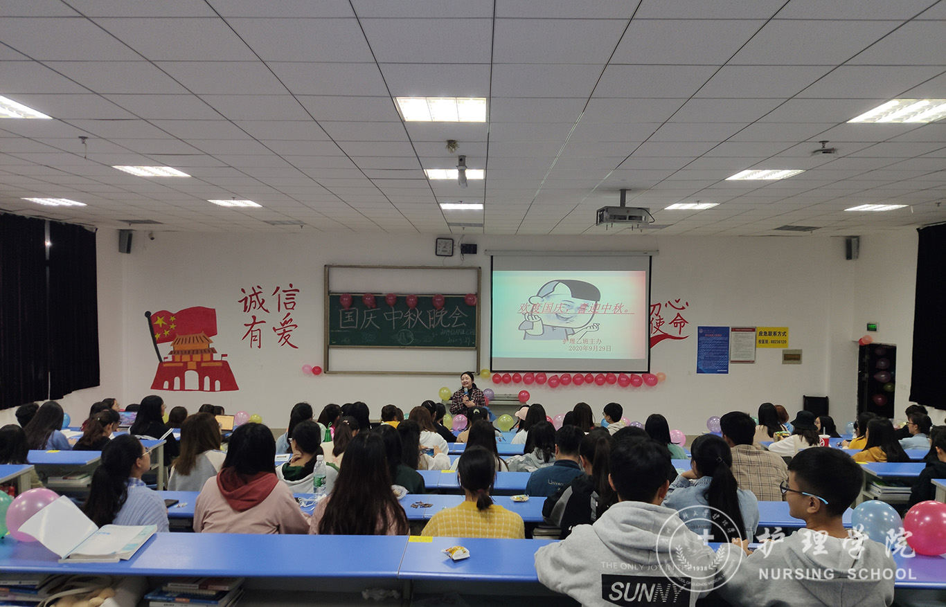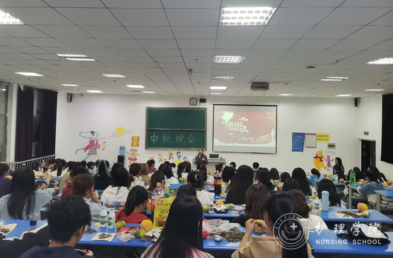 为迎接中华人民共和国成立71周年,喜庆中秋佳节,进一步丰富同学们的文化生活,9月29日晚,williamhill威廉希尔官网助产学2019级、护理学甲、乙、丙班在各班教室举办了“情满中秋欢度国庆”文艺晚会,辅导员曾敏、杨叶卿,班主任老师以及全体同学欢聚一堂共庆佳节。