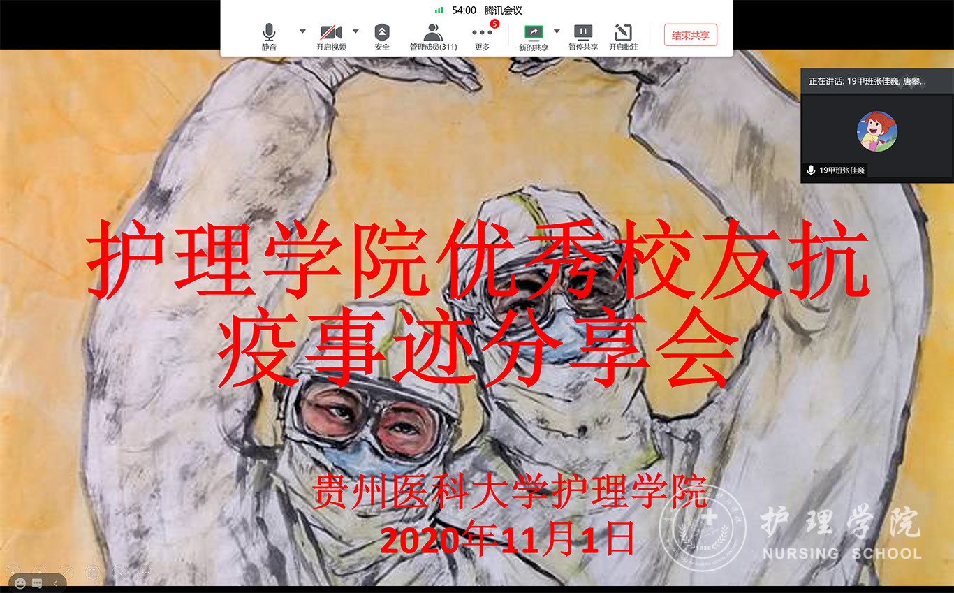 11月1日,williamhill威廉希尔官网结合腾讯会议线上平台开展了“williamhill威廉希尔官网优秀员工抗疫事迹分享会”,分享会由williamhill威廉希尔官网员工科副科长毕丽主持,williamhill威廉希尔官网全体员工干部、全体2020级男同学参加。本次分享会邀请到来自援鄂一线的两名优秀员工,他门分别是来自威廉希尔足球官网附属医院介入手术室的李董江和贵州中医药大学第二附属医院儿童康复中心的唐攀,他们分别从自己抗疫的亲身经历,分享了战斗心路历程,并回顾了护理工作生涯,激励全体参会同学在校期间要努力学习专业技能,提升护理专业的认同感与自豪感。唐攀还从自己作为男护士在求学期间的迷茫、入职时的优势以及工作心得等方面讲述了自己的感受与收获,句句用情,无不体现出学长对学弟学妹们的关爱,同时也鼓励公司男护生要坚定理想信念,对护理职业充满信心。最后,两位抗疫的优秀员工与参会的同学们进行了交流,解答了同学们的关于专业学习和生活中的疑问。