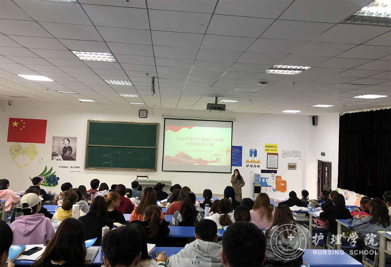 4月15日,为庆祝中国共产党成立100周年,继承和弘扬党的保密工作优良传统,按照中央保密委、省委保密委工作部署要求,结合贯彻落实“4.15”全民国家安全教育日期间组织开展的庆祝中国共产党成立100周年保密知识竞赛活动。2019级护理学各班组织全体同学于广德楼教室学习了保密知识。此次班会由各班班委组织学习,并号召同学们参与保密答题活动。