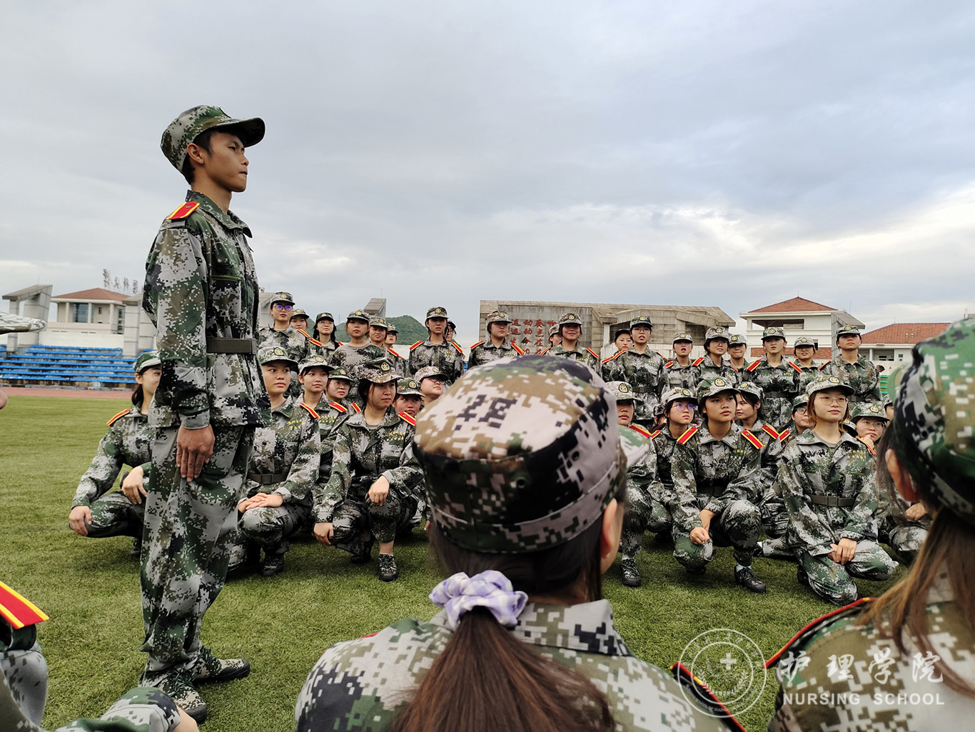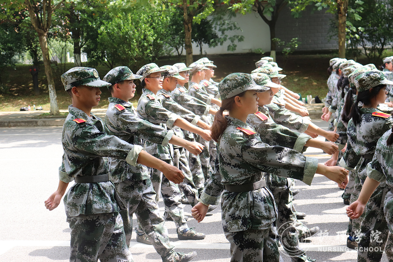 在为期12天的军训过程中,护理学子头顶骄阳、挥汗如雨,即使在烈日暴晒下感觉到身体严重不适,同学们依然咬牙坚持,没有同学中途退出,展现出了永不服输的坚强品质。炎炎烈日下挺拔的军姿、绿茵场上整齐划一的方队、疲惫状态下喊出嘹亮清脆的口号彰显护理学子自强不息、吃苦耐劳和永不言败的精神风貌。