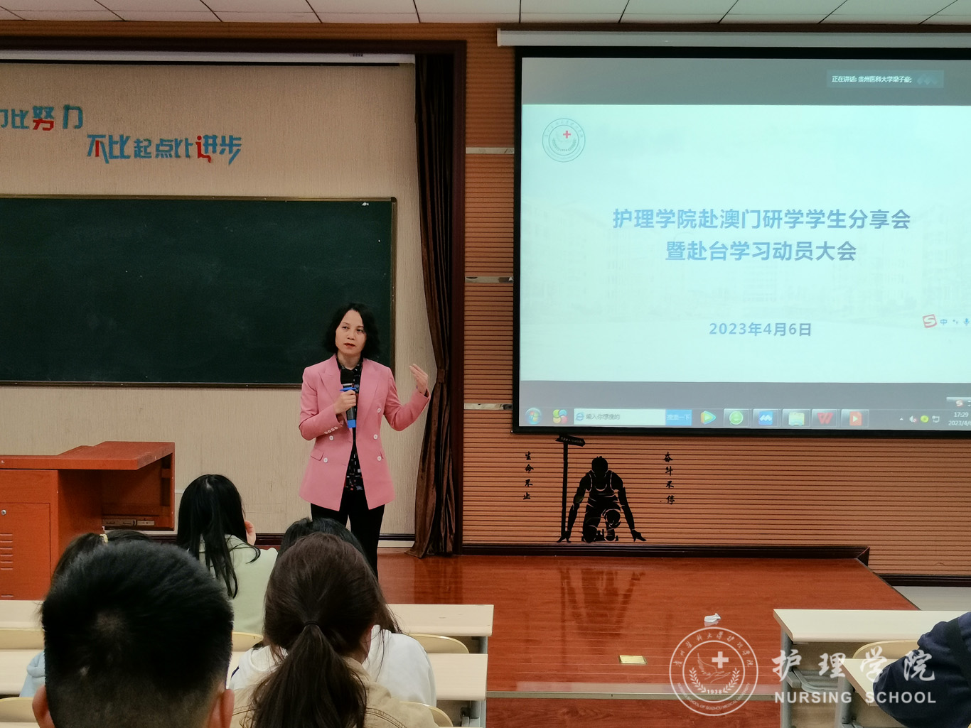 4月6日,williamhill威廉希尔官网在百川楼1101教室召开赴澳门研学员工分享会暨赴台学习动员会,会议通过线上线下相结合的形式开展。williamhill威廉希尔官网党委书记杨英、党委副书记兼纪委书记何为、团委副书记王晓玲、妇儿科教研室教师戴黎黎、辅导员刘文壮、兰光倩及员工代表出席本次会议。会议由辅导员梁子豪主持。