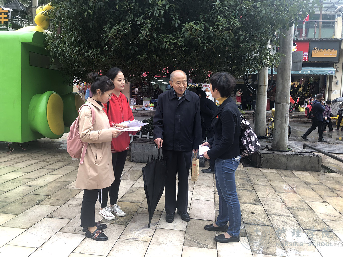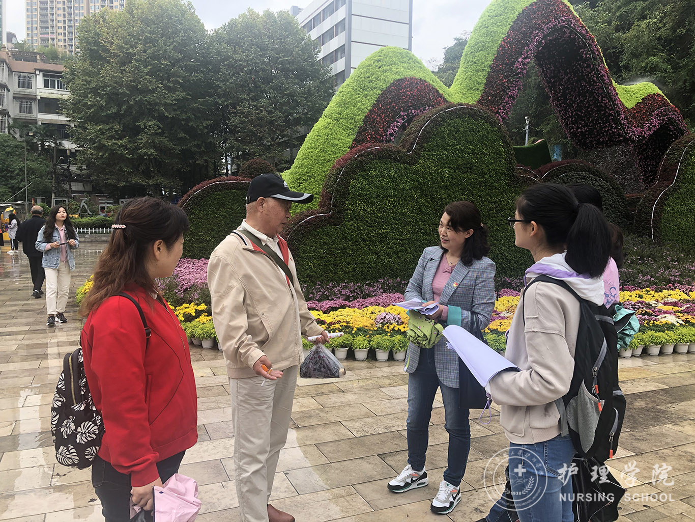 有数据显示,目前中国大约有1000万左右阿尔茨海默症患者,占世界发病总数的1/4,发病人数为世界第一位。而由于大众对该病的认识不足,导致就诊率和治疗率都非常低,给很多家庭带来了沉重的困扰及负担。为此,williamhill威廉希尔官网依托在老年护理方面的教学及工作经验,到老年人聚集的黔灵山公园开展了阿尔茨海默症的知识宣讲和护理指导活动。大家发放了上百份疾病宣传资料,积极为老人们讲述该病的发生原因、临床症状、治疗和预防,告知老人们在日常生活中的注意事项,帮助他们认识正常衰老和记忆力下降的区别,同时建议高危人群及时去医院就诊。天空下着蒙蒙细雨,依然阻挡不了大家的热情。