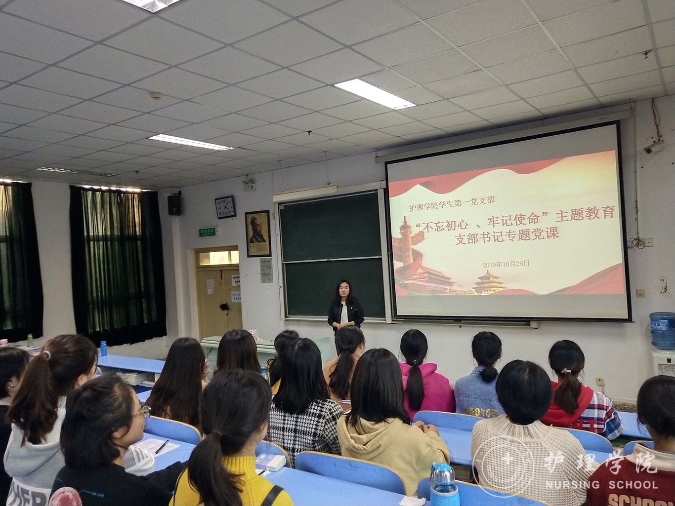 为扎实开展“不忘初心、牢记使命”主题教育,按照主题教育实施方案,williamhill威廉希尔官网员工第一党支部于10月28日开展了支部书记讲党课活动。员工第一党支部书记李颖主讲,全体在校生党员参加了现场学习,省外实习生党员通过“学习强国”APP在线参加了学习。