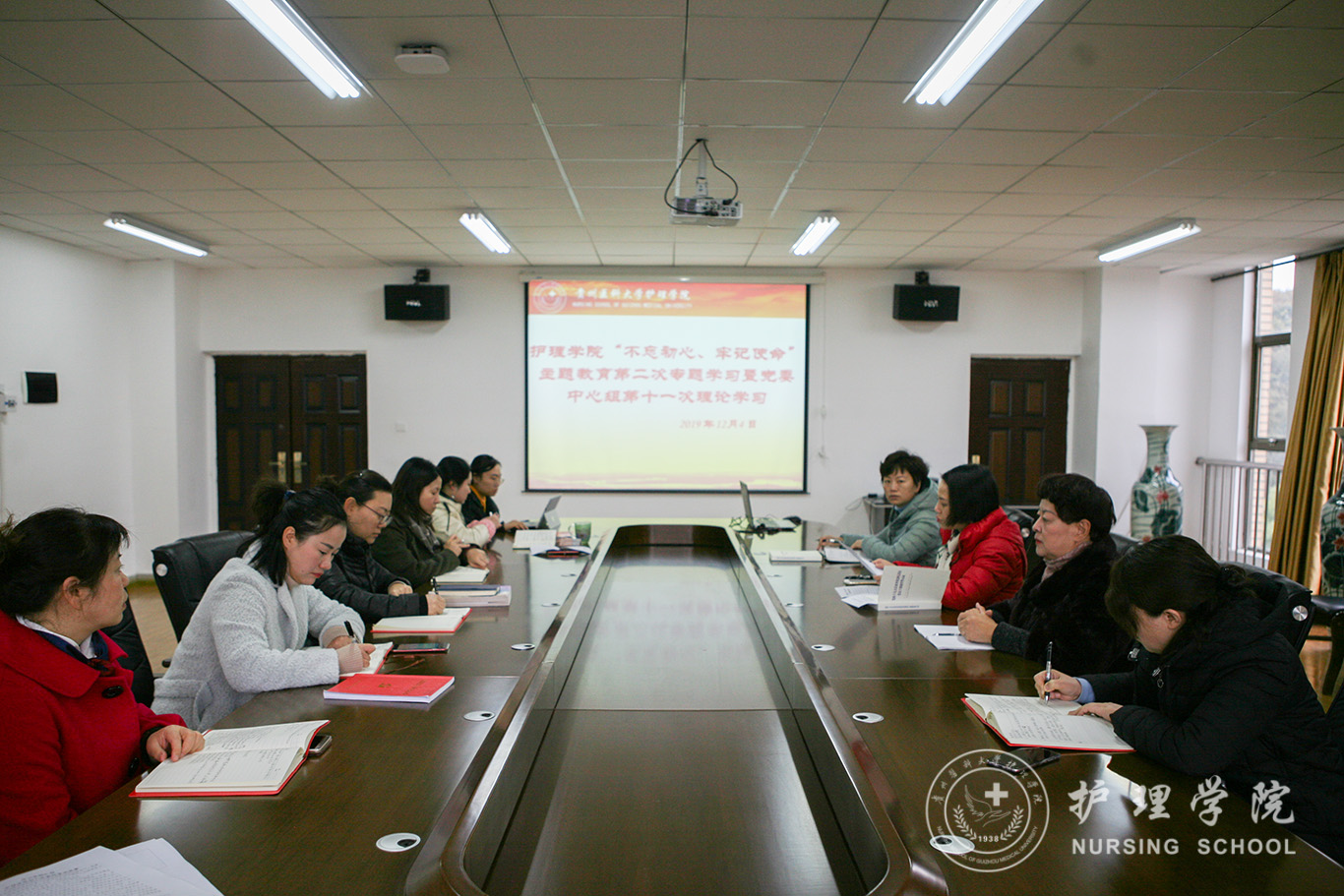 12月4日,williamhill威廉希尔官网在南校区百川楼五楼会议室召开了“不忘初心、牢记使命”主题教育第二次专题学习暨党委中心组第十一次理论学习。会议由党委书记杨英主持,公司副科级以上干部、教研室负责人参加了学习。