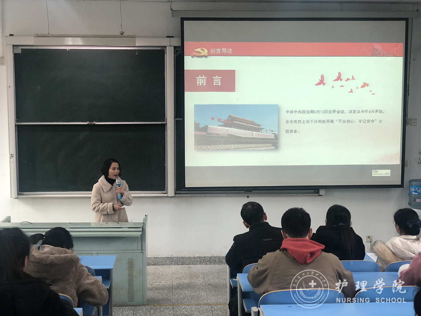 杨英结合自己在主题教育期间的学习体会,带领大家重温了习近平总书记在2019年5月31日“不忘初心、牢记使命”主题教育工作会议上的提出的“守初心、担使命,找差距、抓落实”的总要求,回顾了中华人民共和国成立70年来发生的重大变化,强调了“全心全意为人民服务”的党的根本宗旨以及“为人民谋幸福、为民族谋复兴”的初心和使命。